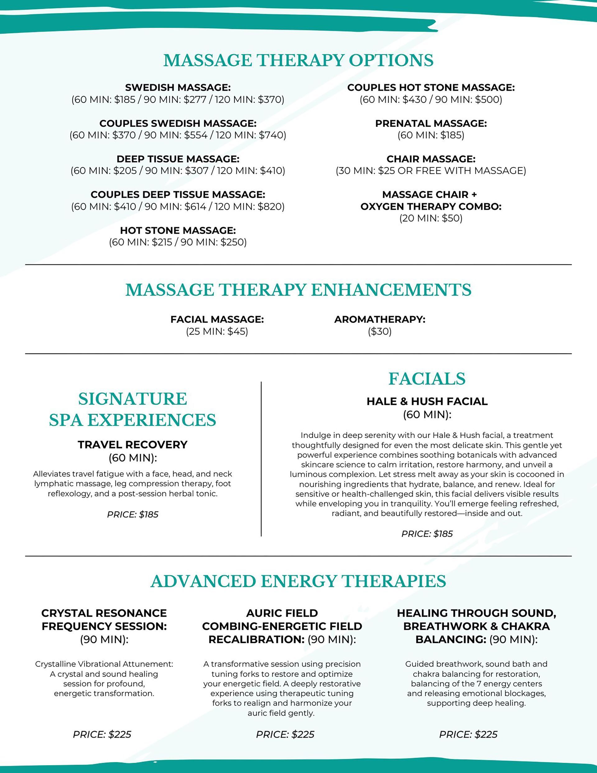 Our full Spa Menu is now available, featuring a range of treatments to help you reset and recharge. Enjoy relaxing massages, targeted bodywork, sound therapy, energy work, and more, all thoughtfully crafted to leave you feeling lighter, calmer, and more connected.